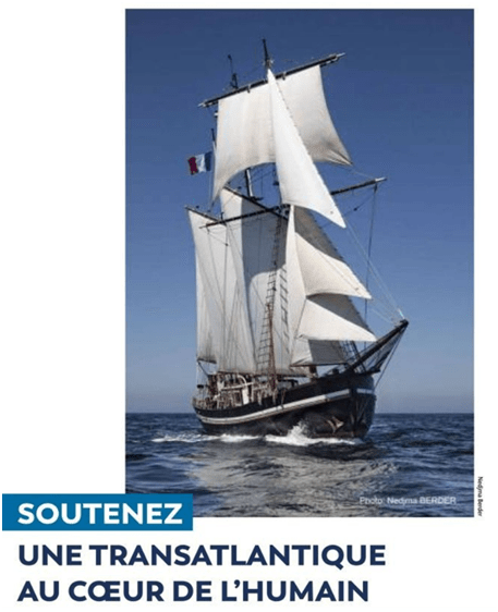 Cette traversée devient un trait d’union entre le Québec et la France, entre la tradition maritime et le monde moderne à l’aide d’un magnifique 3 mâts qui fait écho au passé, mais surtout à l’avenir du transport maritime et la réduction de l’empreinte carbone pour nos futures générations.